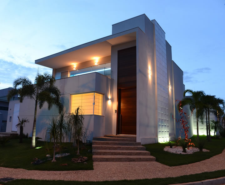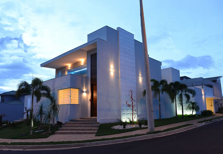 Partido arquitetônico contemporâneo em terreno de esquina do Damha I, com expressividade nas linhas retas e materiais adequados à vida moderna.